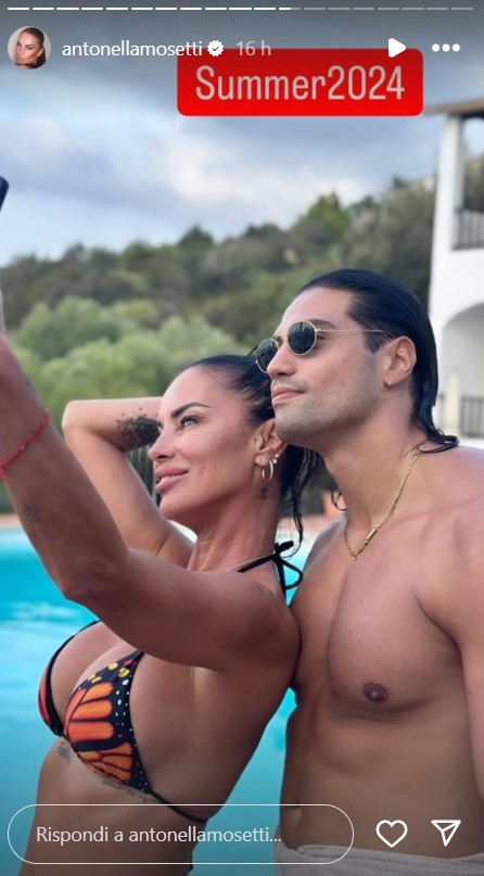 Tramite Instagram Stories, Antonella Mosetti ha condiviso una foto che la immortala con il figlio di Bettarini. Lei e Niccolò sono in piscina e posano per un selfie. E’ lei a tenere lo smartphone, mentre lui è alle sue spalle. Non ci sono baci o abbracci e l’ex ragazza prodigio di Non è la Rai ha descritto l’immagine con una didascalia banale: “Summer 2024“.