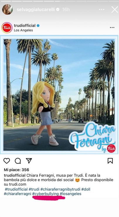 Nel 2019, Chiara Ferragni aveva sponsorizzato la bambola Trudi parlando di beneficenza ad un’associazione no profit americana che si occupa di cyberbullismo. La Ceo e fondatrice della Onlus, contattata negli ultimi giorni da Zona Bianca, ha fatto sapere: “Non so chi sia questa donna e non ho ricevuto alcuna donazione“. In tutto ciò c’è un altro dettaglio che non quadra. Anche se Trudi si dichiara estranea ai fatti, fino a qualche tempo fa, sul suo profilo Instagram le immagini della bambola venivano condivise con l’hashtag #cyberbulling. Oggi, ovviamente, l’hashtag è sparito. A voi le conclusioni.