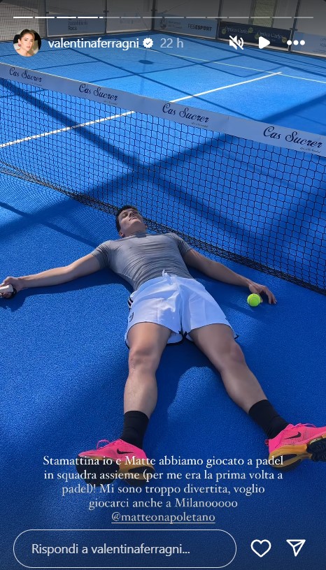 Valentina ha giocato a padel in squadra con il fidanzato Matteo. Mentre lei si è detta assolutamente entusiasta, tanto che lo praticherà anche a Milano, Napoletano non è apparso altrettanto convinto. La Ferragni ha ammesso: “