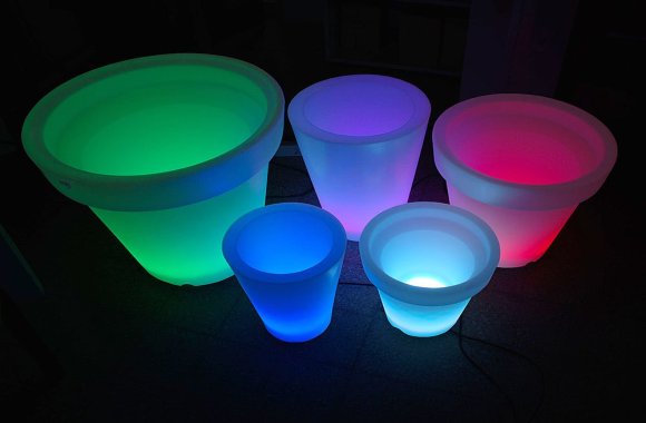 Il LED emana una luce diffusa di colore rosso,verde o azzurro grazie alla dotazione di filtri colorati. Per rendere l’ambiente esterno della vostra abitazione particolare ed originale, o anche perché no quello interno, questi vasi LED sono elementi di arredo divertenti e caldi. Ideale per donare al vostro giardino o al balcone un’atmosfera raggiante anche di notte, l’autonomia d’illuminazione dipende dall’accumulo dell’energia solare, che mediamente si stima sia di 6-8 ore. Esistono in commercio di varie misure, forme e colori. Prezzi e modalità di acquisto qui.